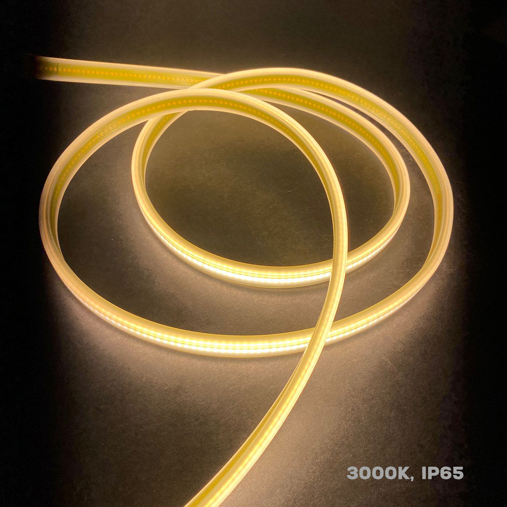 The Outdoor Dotless COB LED Strip Light delivers powerful, uniform lighting in a weather-resistant format. Designed for large-scale exterior applications, it runs directly on AC110V, eliminating the need for external drivers.