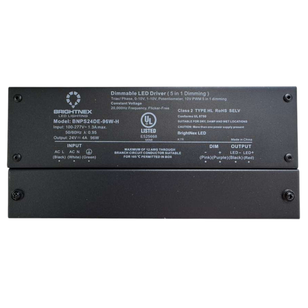 This 96W constant-voltage LED driver delivers reliable, flicker-free dimming performance for residential and commercial lighting installations. With full 5-in-1 dimming compatibility—TRIAC, ELV, MLV, 0-10V, PWM, and potentiometer—this driver integrates easily into new or existing dimming systems.