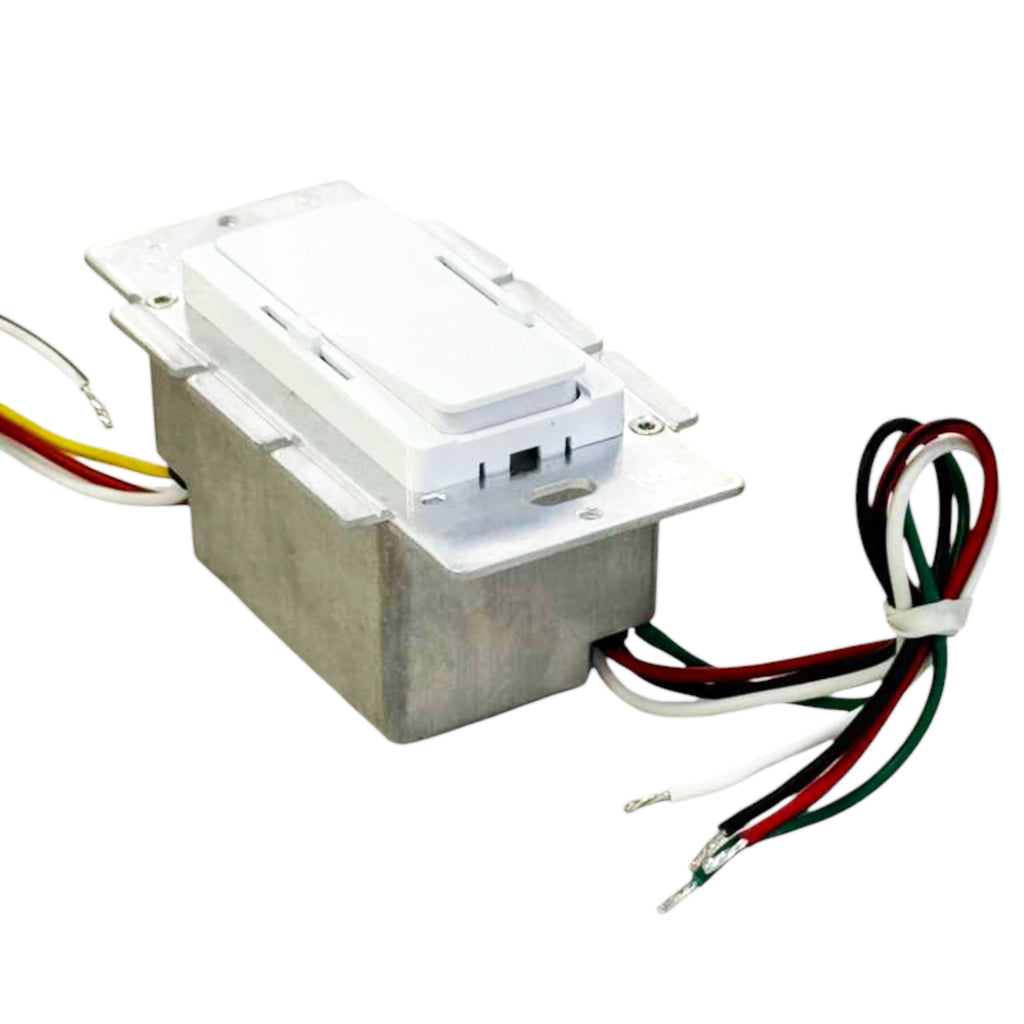 This 24V 160W constant voltage LED driver integrates a built-in dimmer for both brightness and CCT control. Designed for flicker-free operation using a 16kHz PWM output and gamma 2.2 curve, it delivers smooth dimming from 0.3% to 100%. It is compatible with standard and 3-way switches and includes a fine-tuning voltage adjustment knob. The unit is UL/cUL, FCC, and RoHS certified, and equipped with full protections. Ideal for tunable white LED installations in both residential and commercial spaces, rated for dry and damp locations.